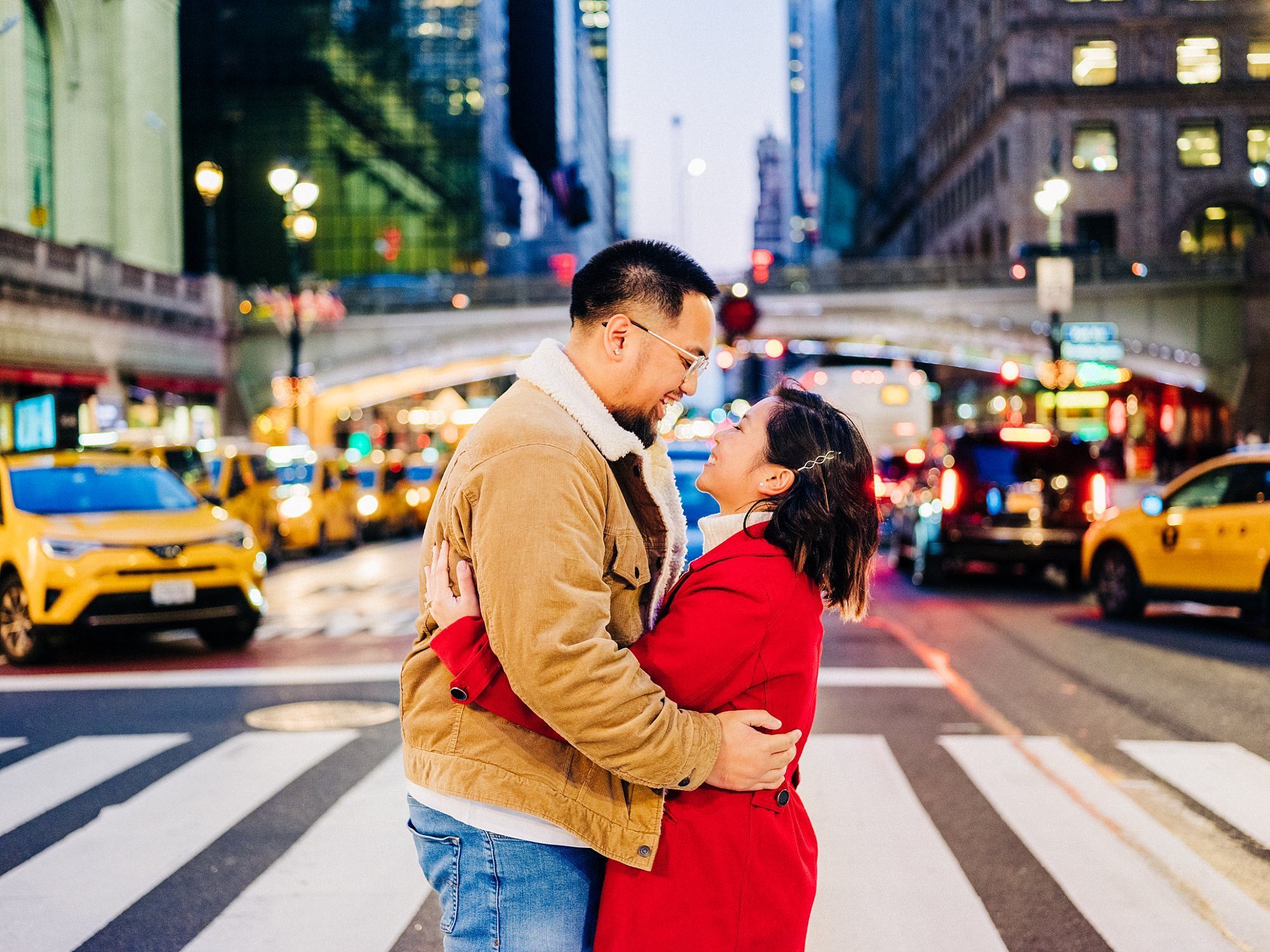 We kicked things off at Bryant Park, soaking in the festive energy of the Winter Village. Between the twinkling lights and the hustle of holiday-goers, the city had a certain glow. These two were naturals—laughing, dancing, and embracing like no one else was around.